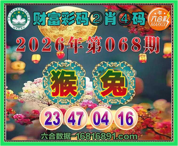 068期:『财富彩码』 🧧②肖④码🧧【猴兔】【23.47.04.16】开:猴23准
